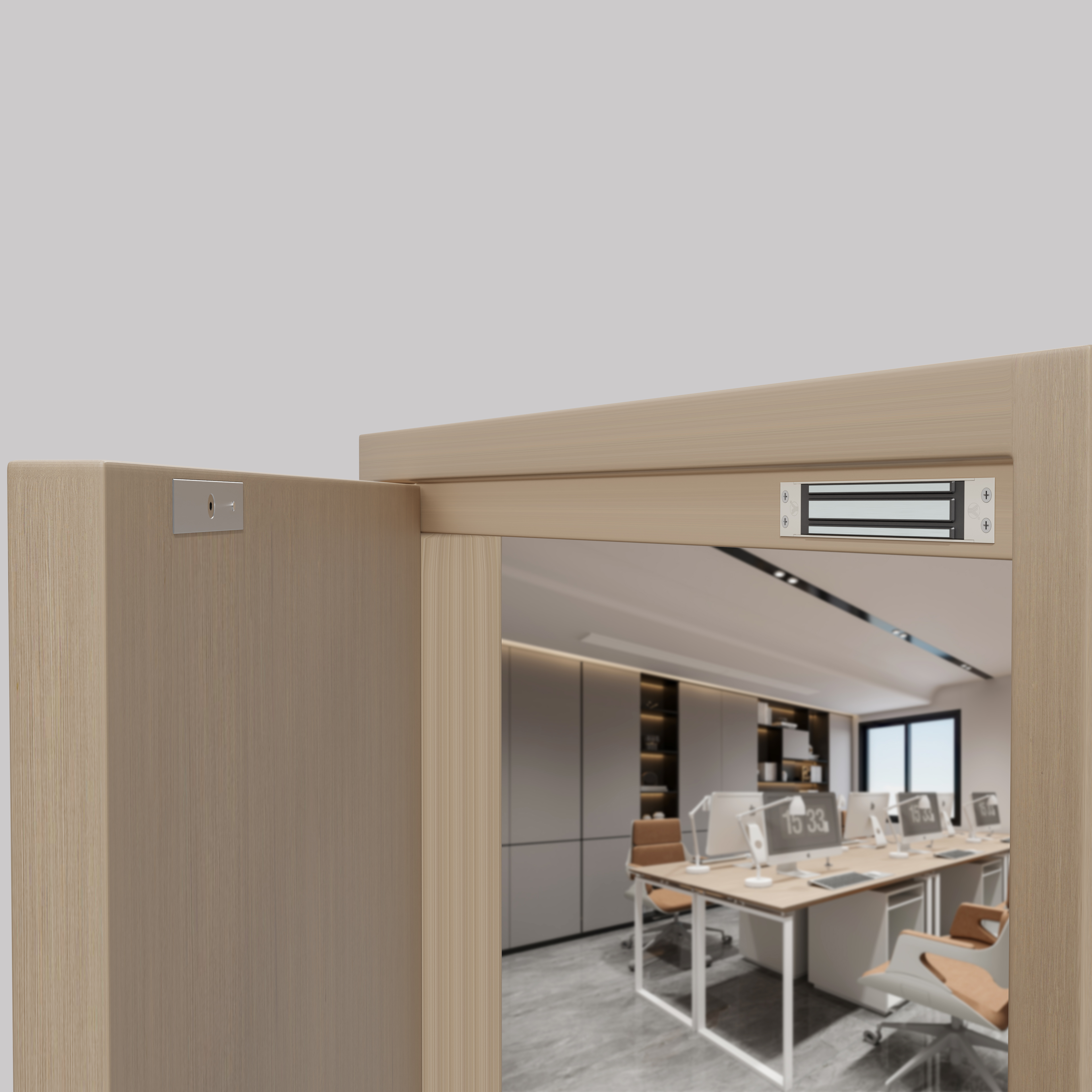 暗裝磁力鎖是針對一般金屬門、木門、防火門設計的,磁力鎖固定于門框上方,以磁力來吸附門扇,安全可靠。安裝時省時省力。內開式門或無框玻璃門、窄框等均有附件配套,特殊防殘磁設計,讓門禁自動化更安全。