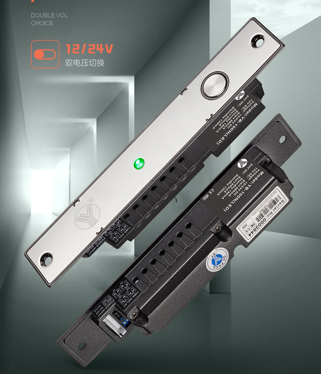 YB-100N(LED) is a multi-functional fail safe electric bolt with double protection for loading current.suitable for glass door, wooden door, metal door . We supply integrated equipment to collocate with fully frameless glass door, swing-in d