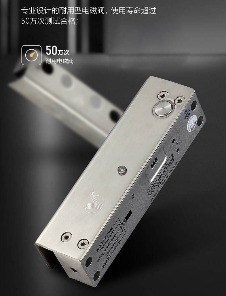 YB-500U(LED)是一款全金屬結(jié)構(gòu)的上下無框玻璃門專用智能型電插鎖,鎖舌采用整體式304不銹鋼實芯棒材,經(jīng)CNC車床精工而成,可承受1000kg沖擊而且鎖舌插出后防撬功能的特殊高保安設(shè)計,連動部件全部采用金屬結(jié)構(gòu),在60℃高溫及零下40℃嚴(yán)寒的惡劣環(huán)境下可正常使用,專業(yè)耐用