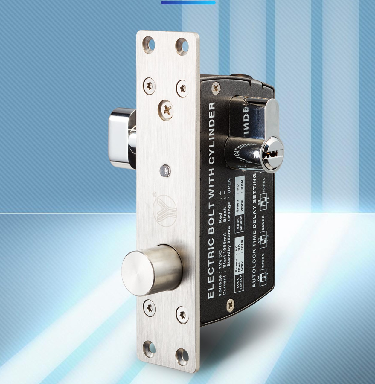 YB-500C(LED)是一款全金屬結構的加強型智能堅固電插鎖,附鎖膽功能,配有歐規鎖芯,可以達到平時“電控”與緊急時“手動”雙用的目的。鎖舌采用整體式304不銹鋼實芯棒材,經CNC車床精工而成,可承受1000kg沖擊,而且鎖舌插出后防撬功能的特殊高保安設計,連動部件全部采用金