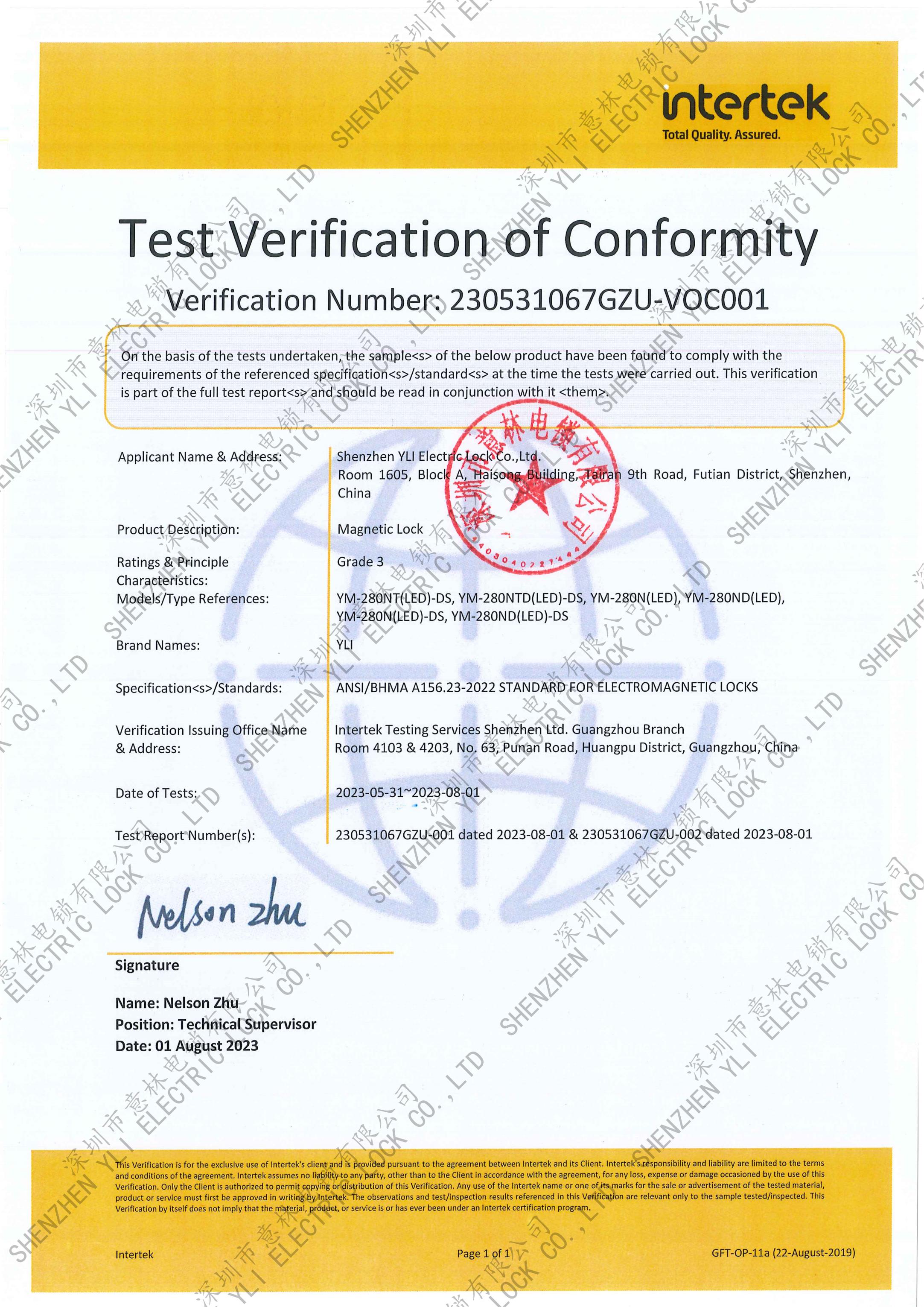 YLI products have passed the EU EN1634 EN1155 fire protection certification