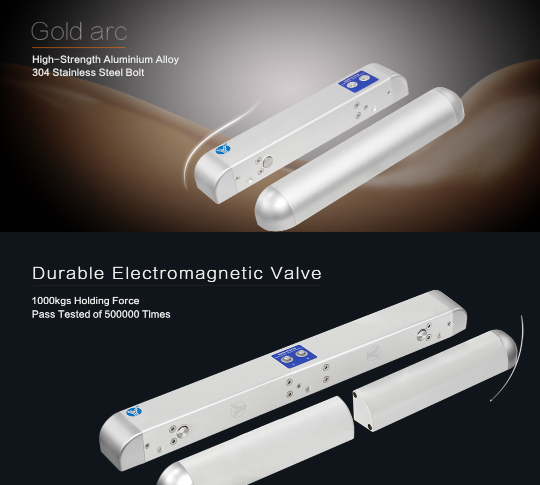 YB-500H(LED) series surface mounting intelligent electric bolt apply high-strength aluminium alloy,304 stainless steel bolt,processed by CNC,come with 1000kgs holding force and anti-theft function.