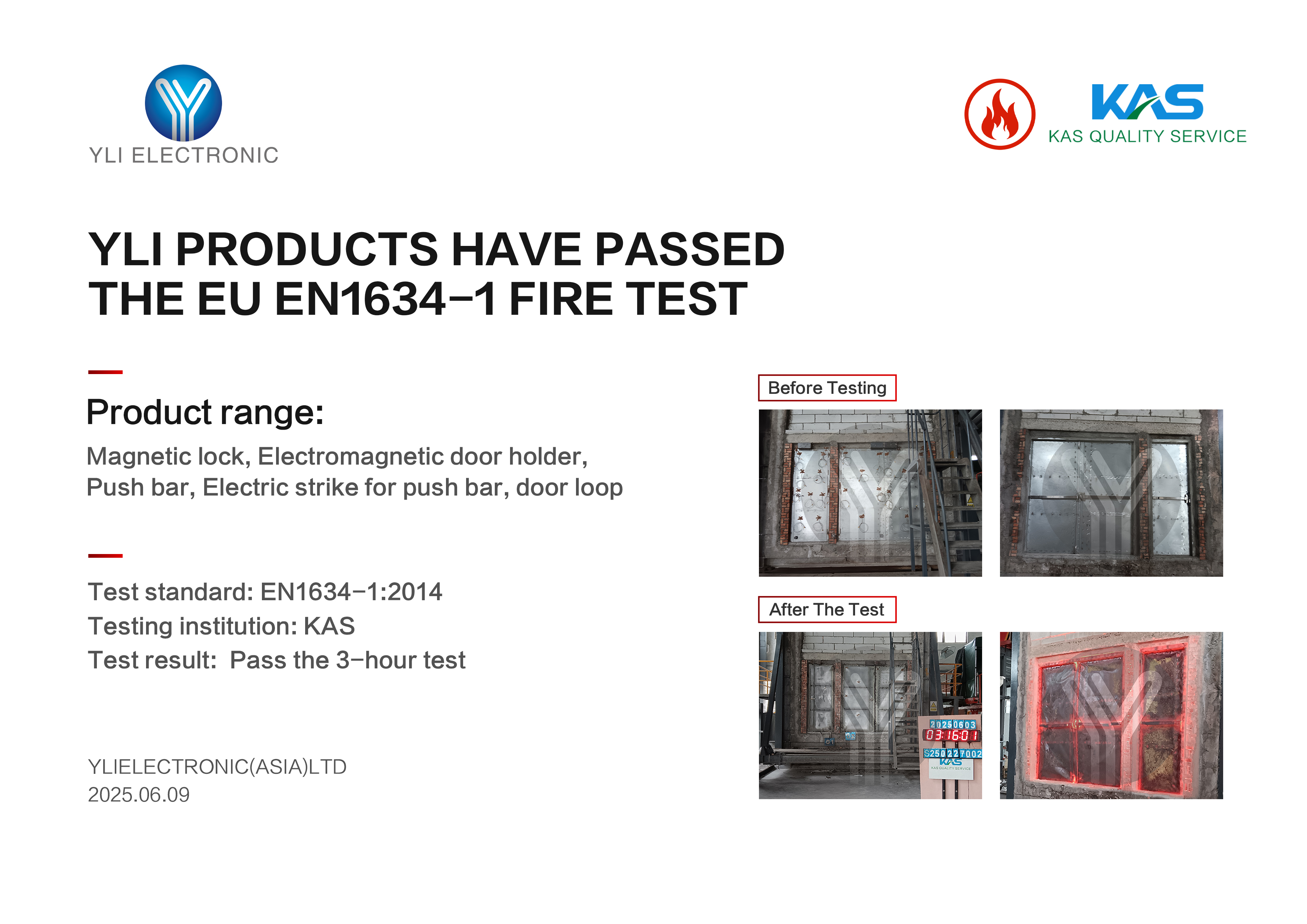 Prev:YLI Electronics obtained the first UL 294 & UL 1034 ETL certification for magnetic locks and electric strikes in the country.
