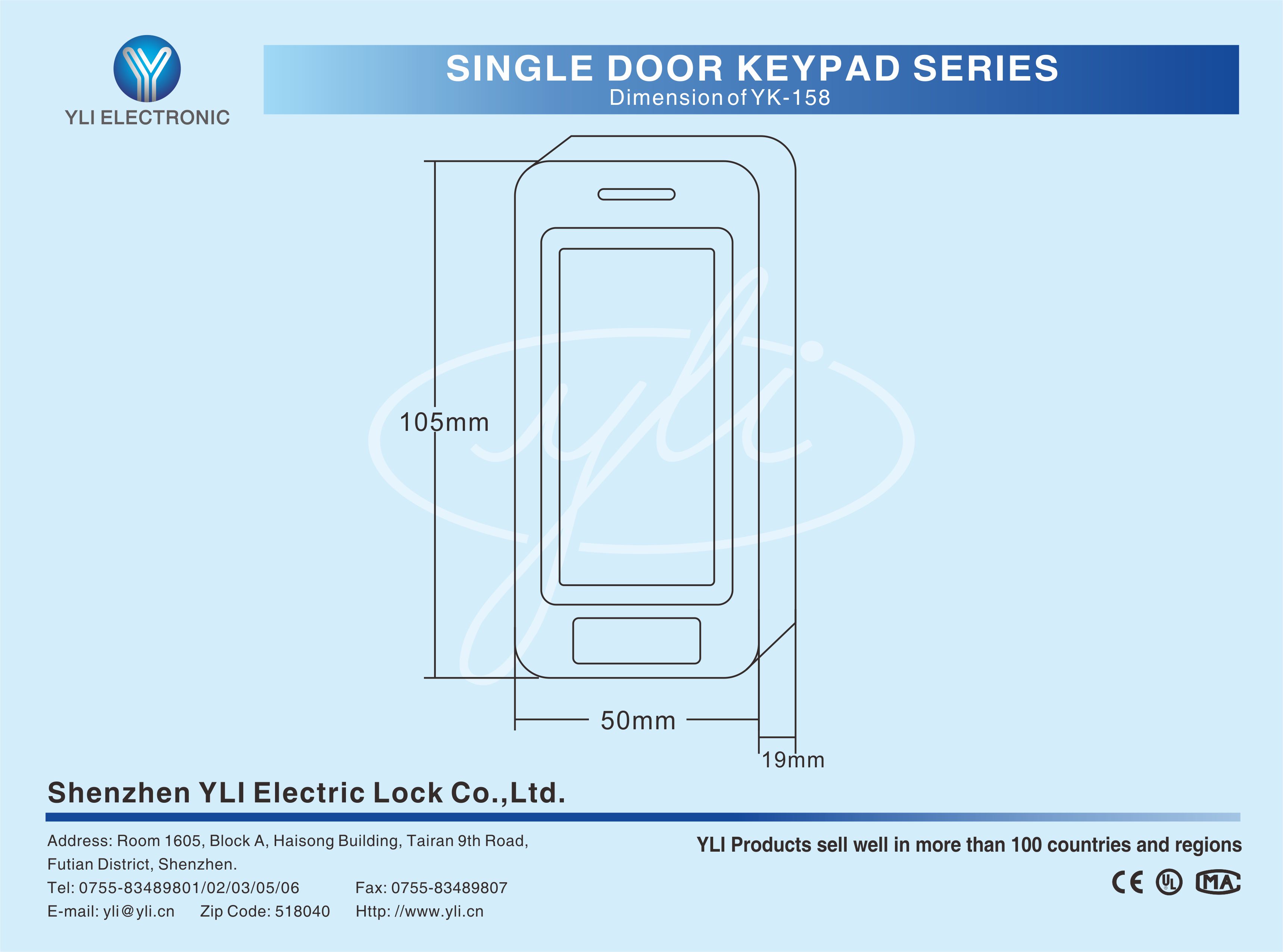 YK-158 is a metel stand-alone access control. It uses Atmel MCU assuring stable performance and low-power circuit makes long service life.It is IP66 waterproof,it is very suitable for outdoor use.