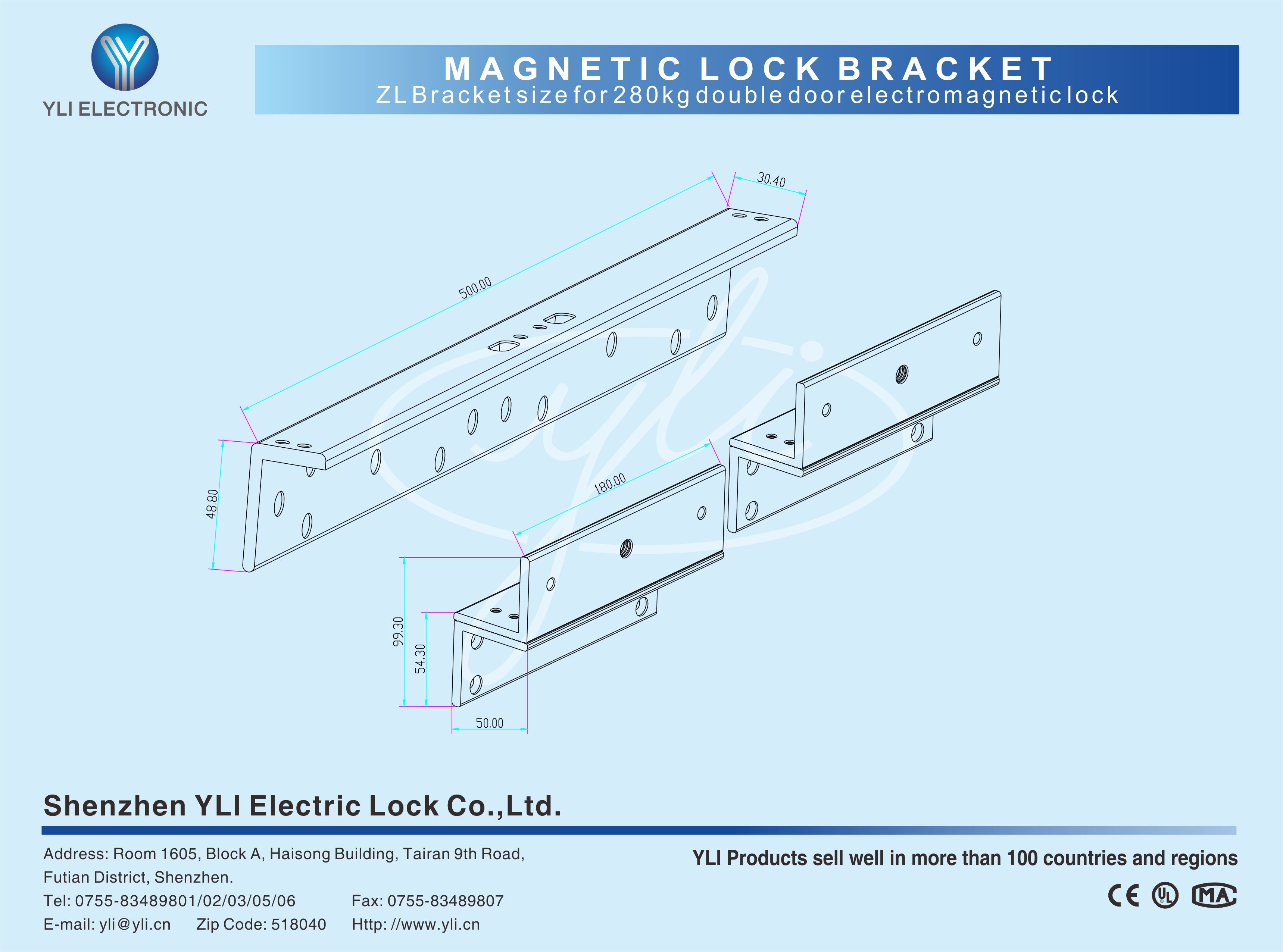 ZL Bracketfor Inward Opening Door and Double Magnetic Lock 1. It is made of two parts and it is used on the inward opening door. 2. MBK-180NDZL/MBK-280NDZL/MBK-350NDZL/MBK-500NDZL are for your choice.3. High Strength Aluminum.