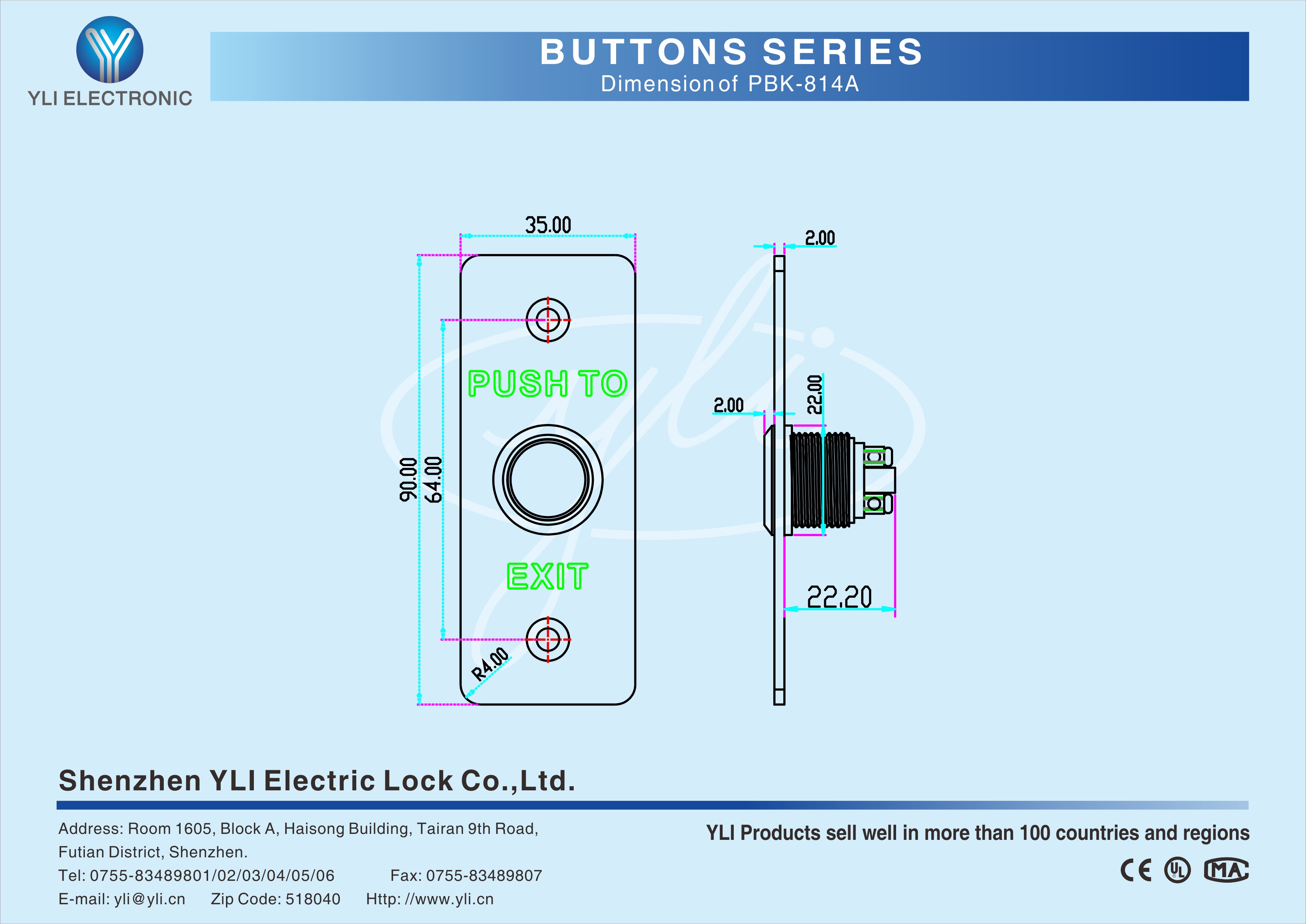 PBK-814A is a stainless steel door release button with size of 90Lx35Wx31H(mm), which is popular with small size.