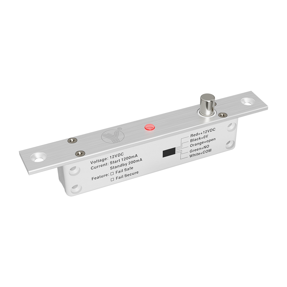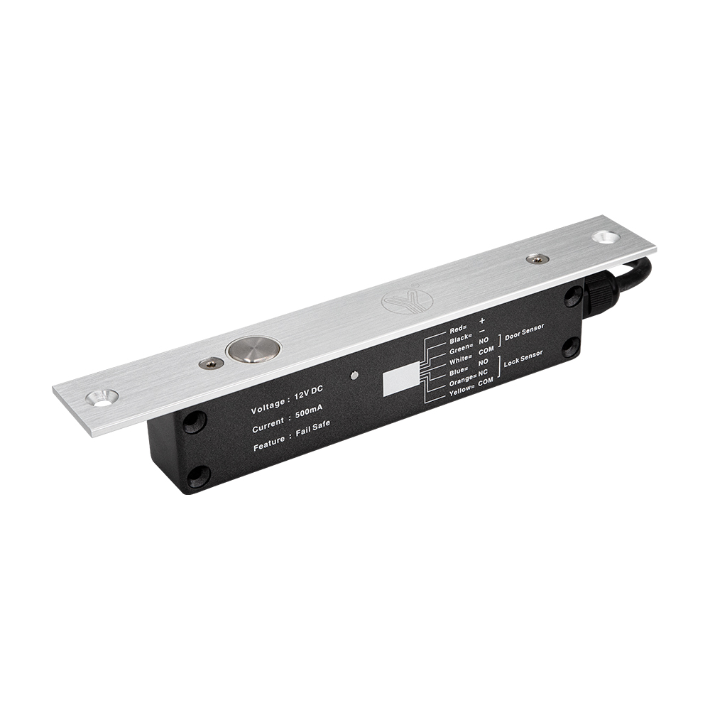 YB-500H(LED)Surface Mount Intelligent Single Door Electric Bolt,High-Strength Aluminum Alloy Housing,Zinc Alloy Body,304 Stainless Steel Solid Bolt,Processed by CNC,1000kgs Holding Force,Bolt comes with anti-theft high-strength security design,Metal linkages ,works in the temperature between 60 ℃ or -40 ℃?normally,durable magnetic valve applied,special photoelectric control system, ultra-low temperature and power consumption design.LED indicates status(green for unlocking;red for locking),Comes with NO/COM contacts and re-lock time delay function,Fail safe or fail secure optional,Convenient installation,time-saving,safe,sturdy,recommended model for any project