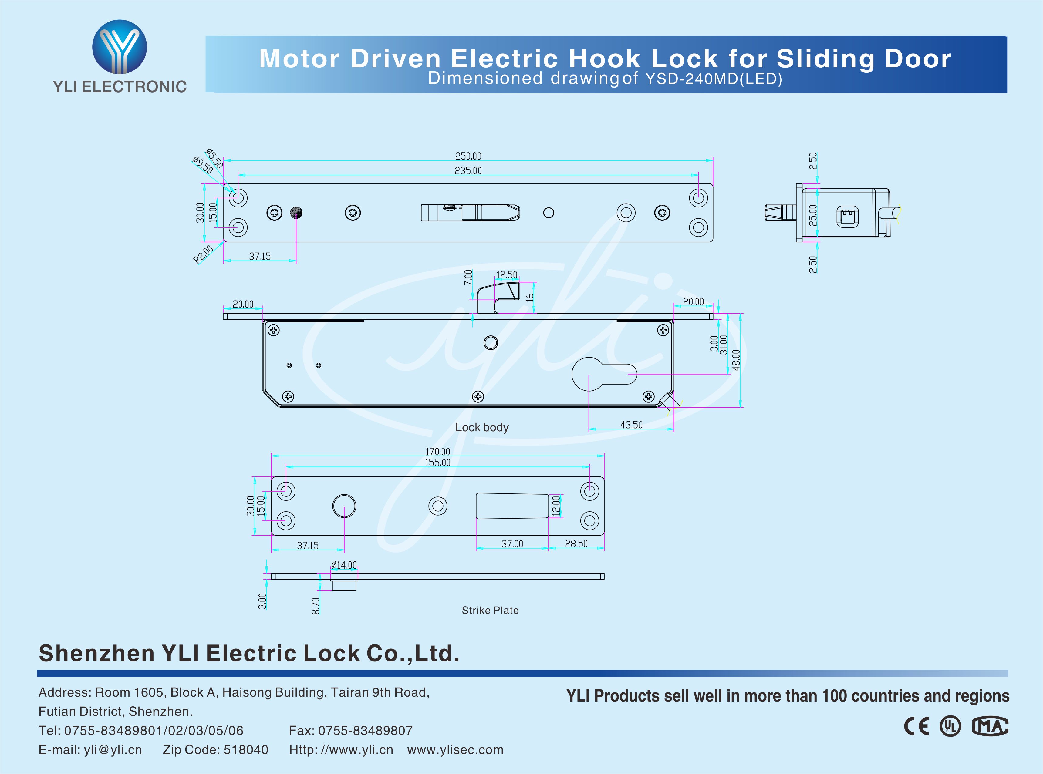 YLI Motor Driven Multi-functional Electric Hook Lock, specially designed for sliding door, equipped with European standard lock cylinder, it can achieve the dual purpose of electric control at ordinary times and manual operation in emergency. The bolt is made of solid steel, processed by CNC lathe, and can withstand 300kg push/pull force, special high security design of anti-prying function after locking, and all the linkage parts are made of metal structure, can be used normally from -40 degree to 60 degree. Professional durable solenoid valve, excellent performance, safe and durable, is the first choice for engineering.