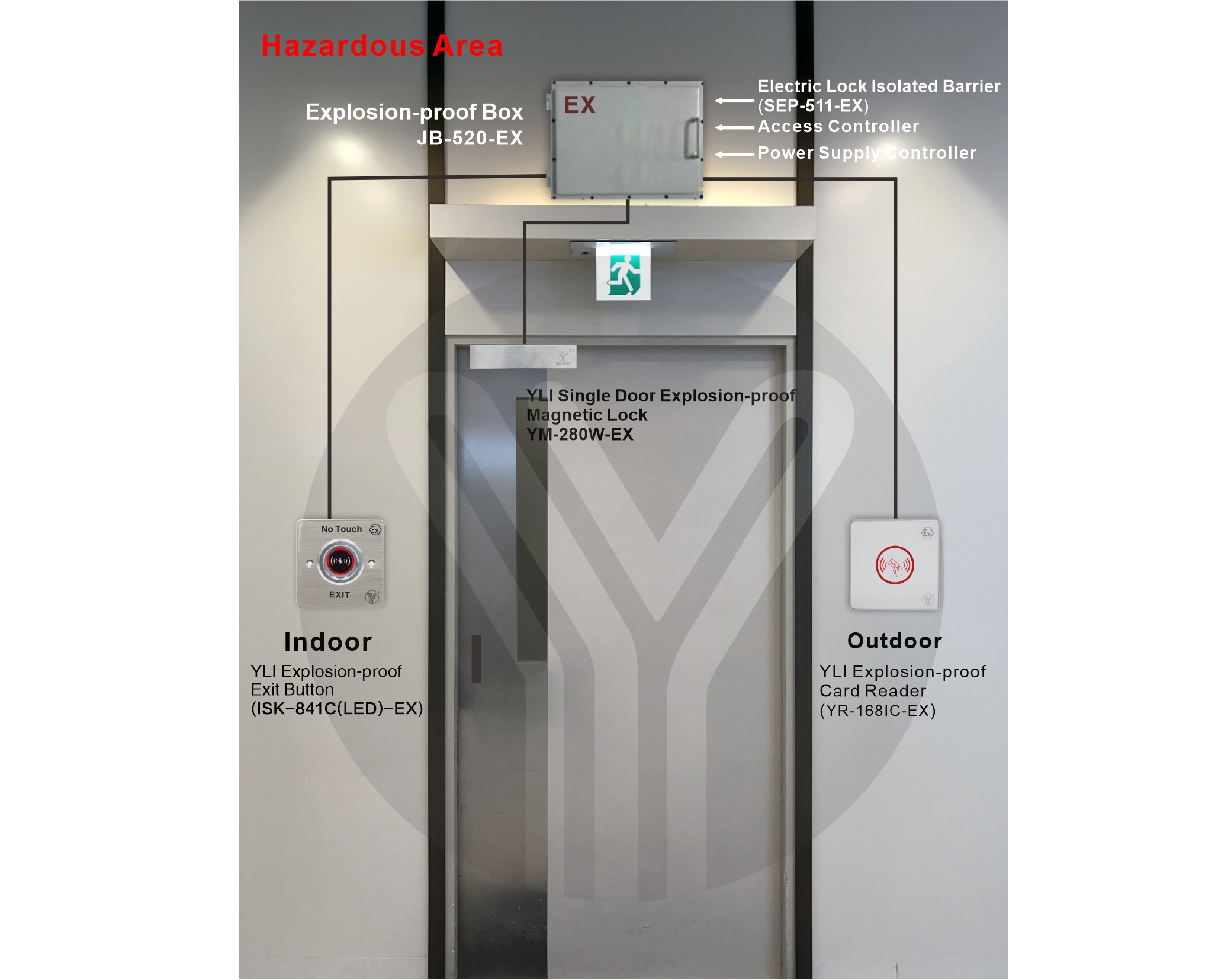 Explosion-proof magnetic lock is a kind of intrinsically safe electromagnetic lock that can be used in inflammable and explosive gas environment. It has simple structure, easy installation and maintenance, wear resistance, high reliability, and can be unlocked by power failure to escape in case of danger. It is especially suitable for petrochemical and other inflammable and explosive places.The explosion-proof electromagnetic lock produced by YLI are designed and manufactured in accordance with the relevant provisions of EU regulations EN IEC 60079-0:2018, IEC 60079-11:2012, EN 61241-11:2006.