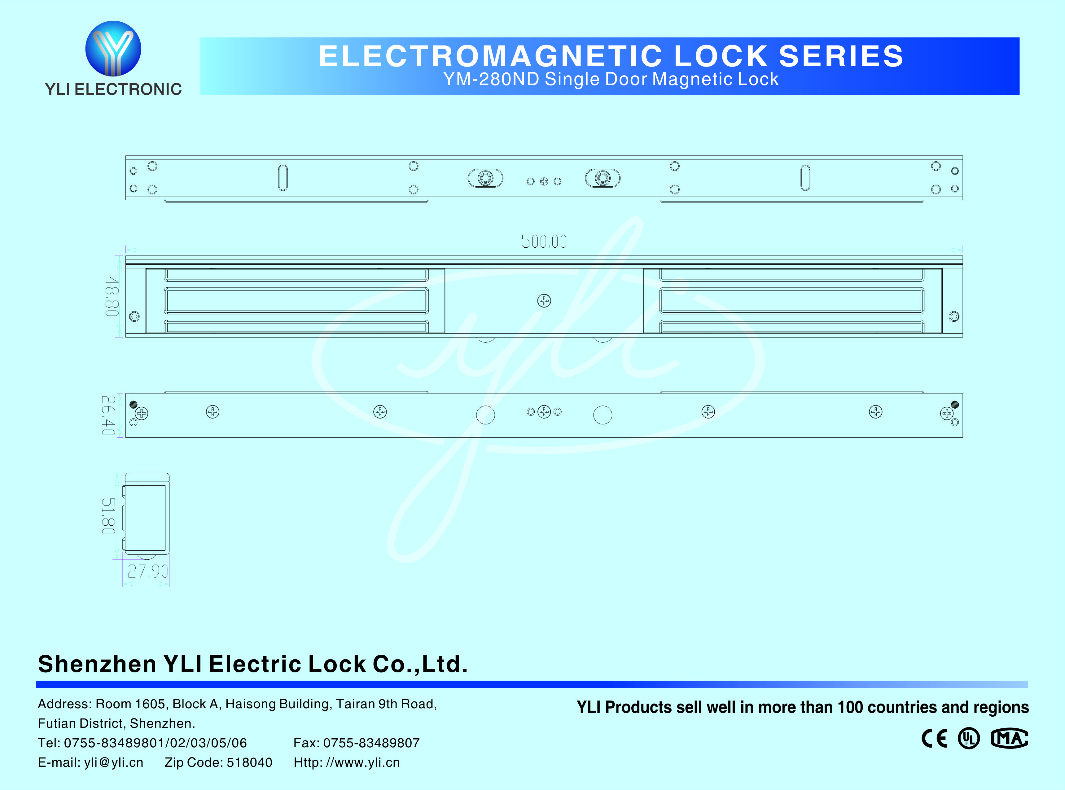 YM-280ND Double door magnetic lock is designed for wooden door, metal door,glass door and fireproof door. YLl magnetic lock cores are produced with robotic laser welding technology, providing 2 to 3 times stronger impact resistance and torsional resistance than conventional production processes. The surface is treated with the internationally leading electroplating process and the lock itself has passed the 240-hour salt spray test in the national laboratory, achieving excellent performance of anti-oxidation, anti-rust and anti-corrosion, Our company offers a complete range of brackets for different locks.