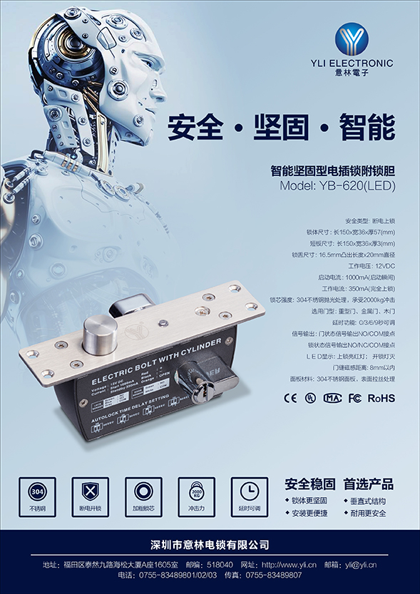 意林有深圳、江門三家生產基地,去年下半年引進自動化設備之后,今年還將增加幾條生產線。系列產品已通過UL、CE、ISO、MA、ROSH等認證,出口到全球100多個國家,在今年,意林將投入80萬元資金用于歐洲及美國等認證。強大的認證體現了企業對產品質量嚴謹的把控態度。意林生產的磁力鎖、電插鎖通過高低溫嚴格測試,適合不同地區的極端氣候。意林提出的三年質保,實際使用壽命在五到十年以上,即使十多年前的老鎖返修也寥寥無幾。目前,意林高保安重型電鎖口、帶把手電插鎖、紅外感應式磁力鎖、消防專用電鎖都是非常受市場歡迎,而國內唯一的直插式防雨淋電插鎖、首創的LED顯示電插鎖,以及智能無人售貨機專用鎖都是市場上的明星產品。