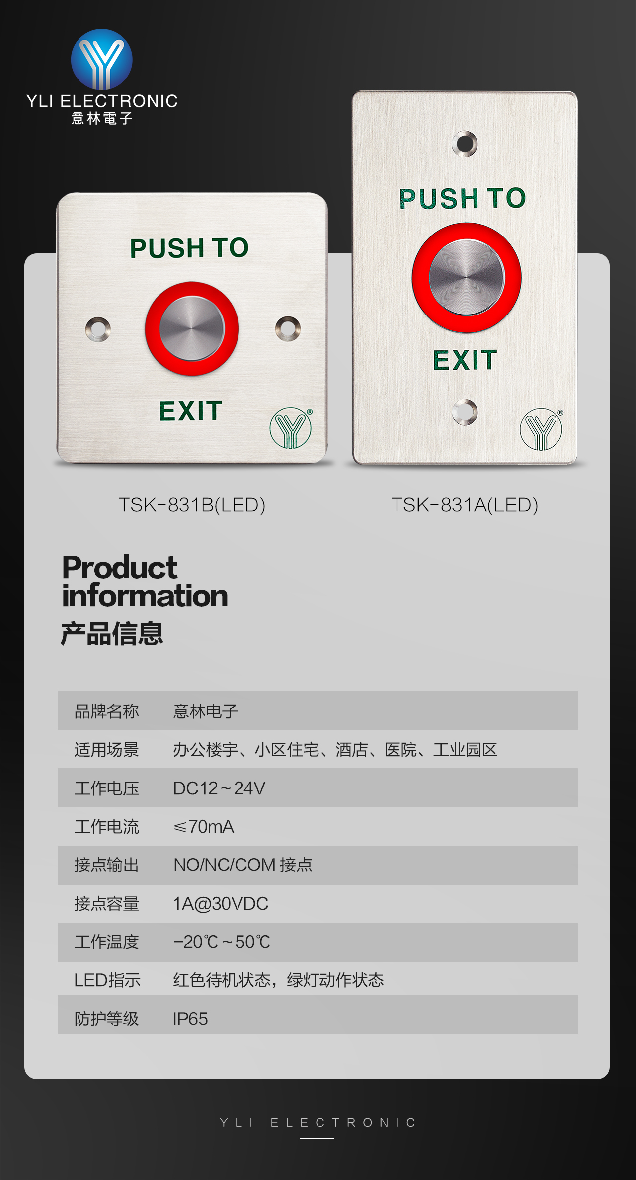TSK-831A(LED) 防水型觸摸門禁專用開關(guān),LED轉(zhuǎn)換,紅色待機(jī)狀態(tài),綠燈動作狀態(tài)。觸摸式設(shè)計(jì),無機(jī)械故障;高檔辦公場所追求,時(shí)尚科技人士最佳選擇。
