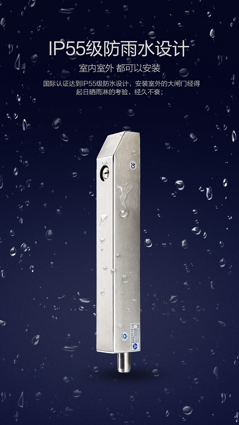 連動部件全部采用金屬結構,在60℃高溫及零下40℃嚴寒的惡劣環境下可正常使用,專業耐用型電磁閥可使用100萬次老化測試合格,防雨水設計可室內或室外安裝。