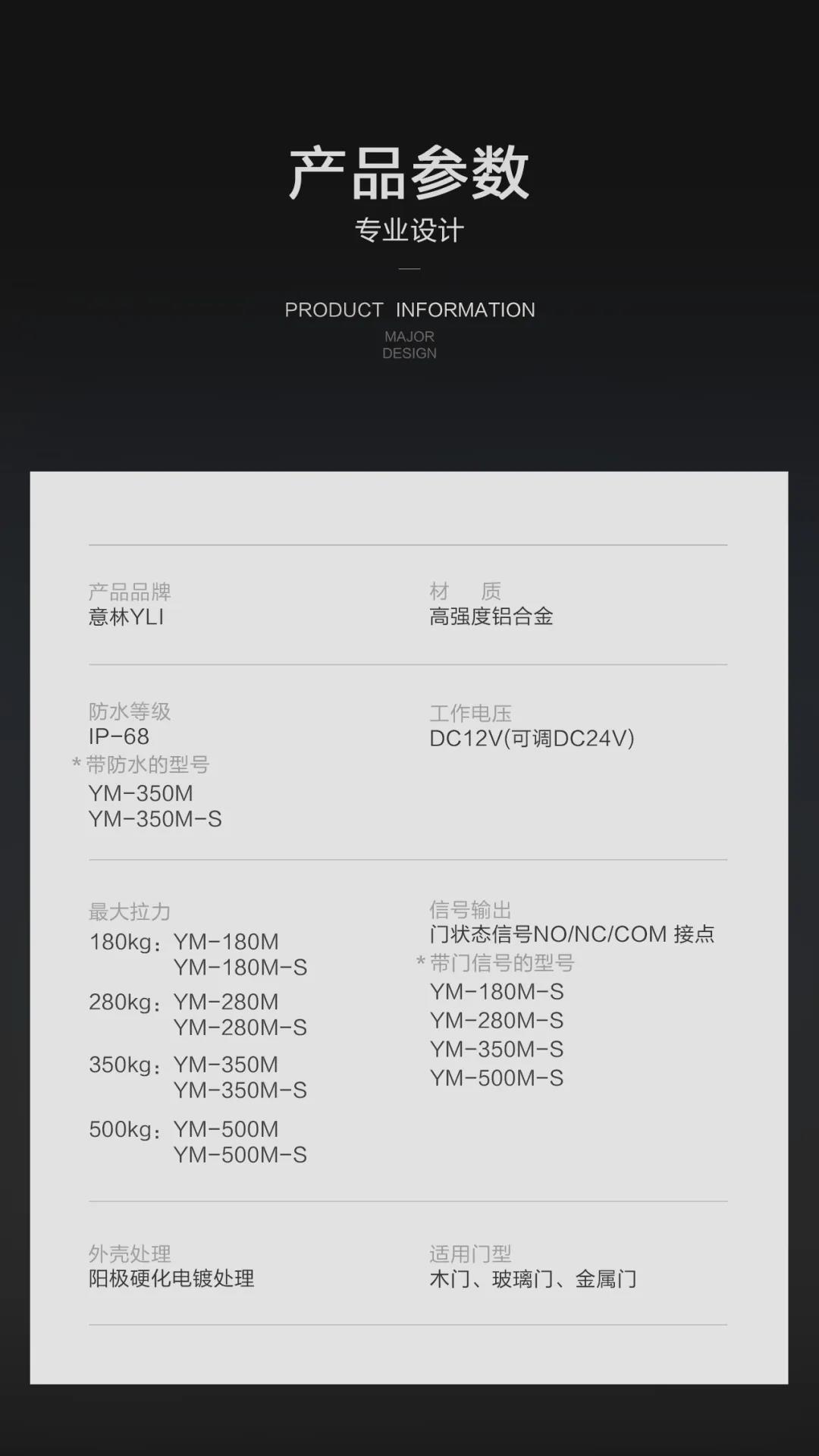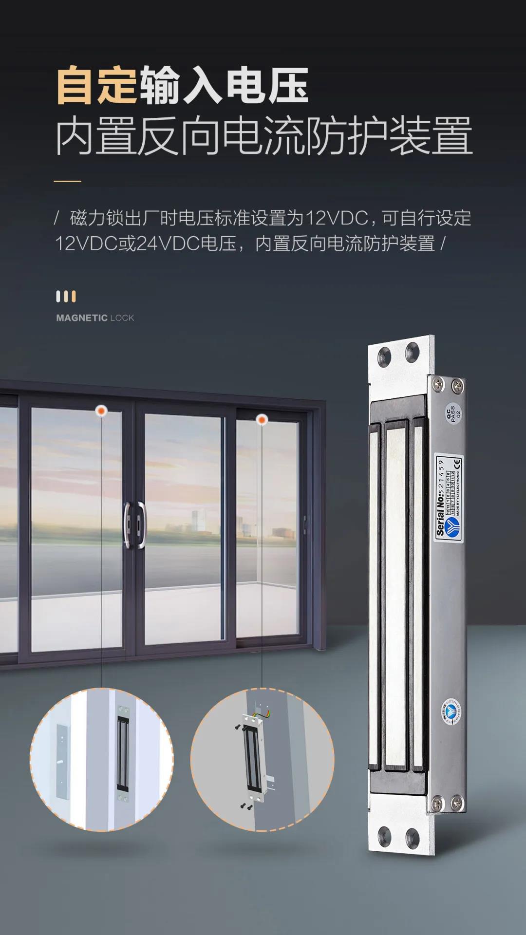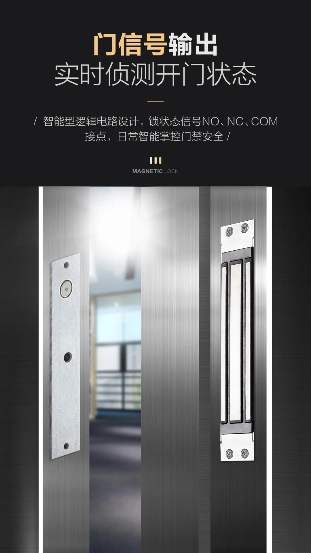 是針對(duì)一般金屬門、木門、防火門設(shè)計(jì)的,磁力鎖固定于門框上方,以磁力來吸附門扇,安全可靠。安裝時(shí)省時(shí)省力。內(nèi)開式門或無框玻璃門、窄框等均有附件配套,特殊防殘磁設(shè)計(jì),讓門禁自動(dòng)化更安全。