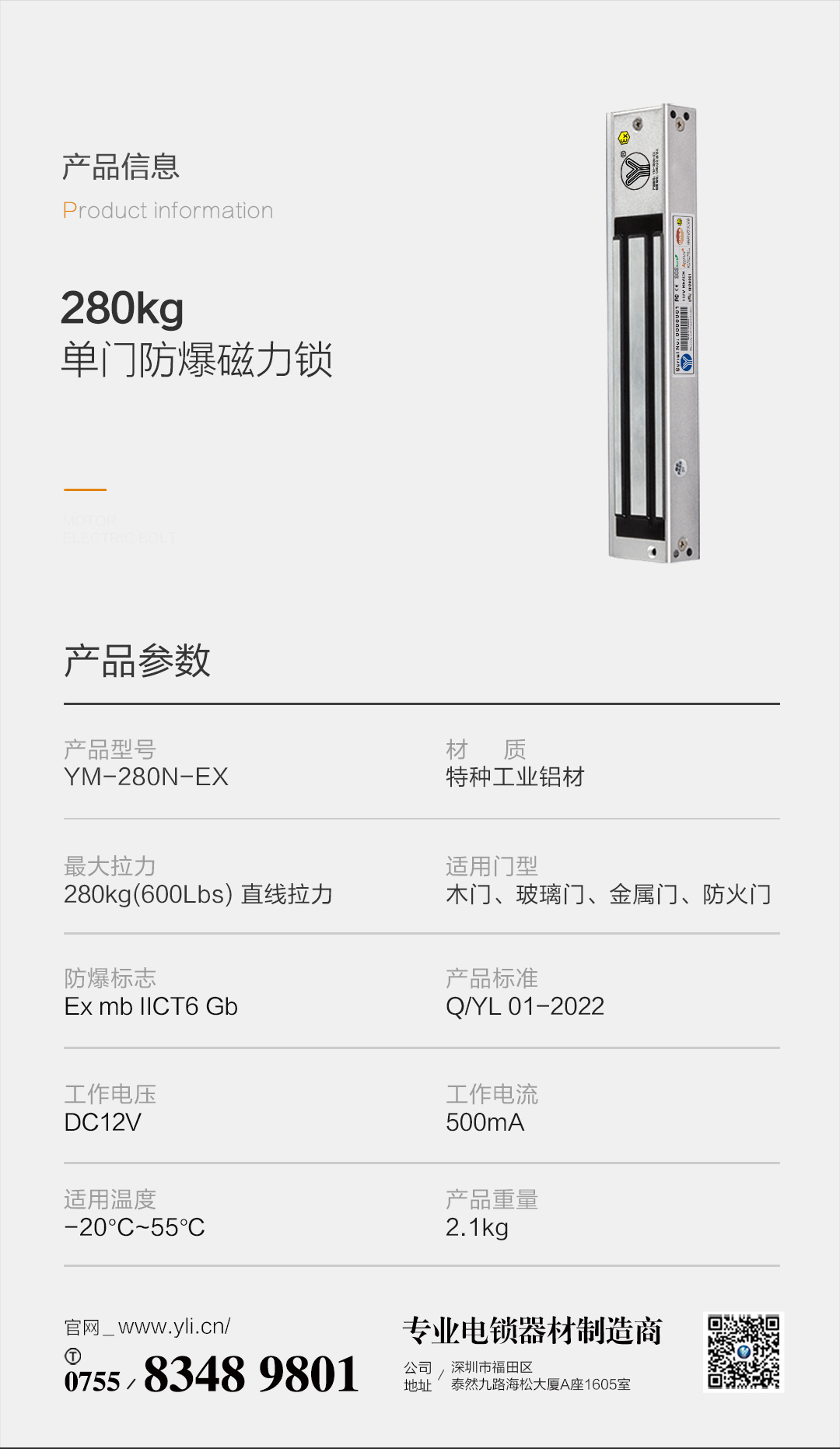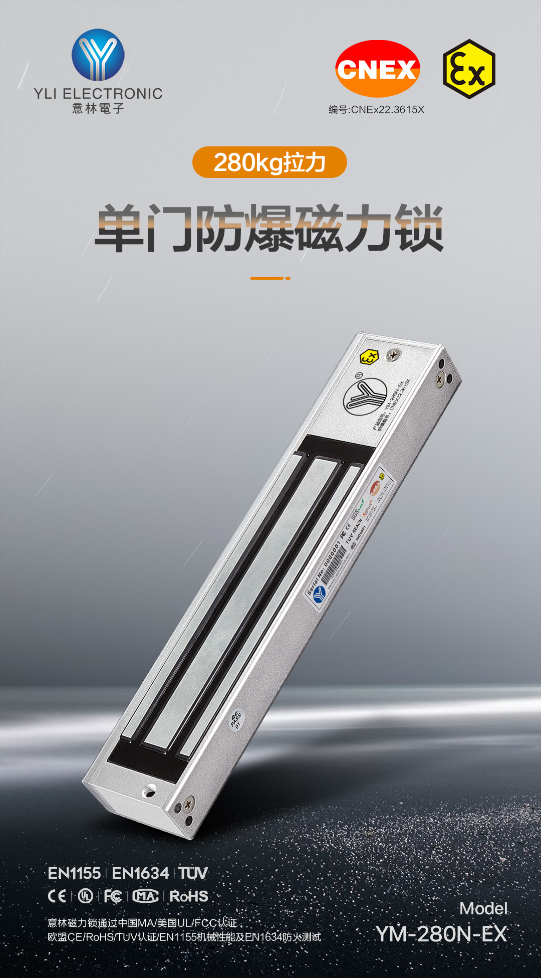 意林電子|YM-280N-EX 防爆磁力鎖