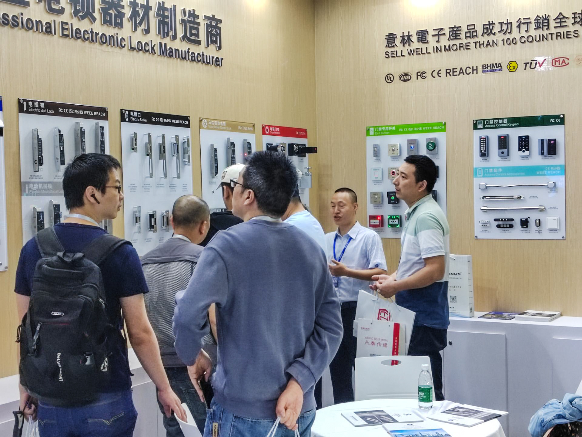 展會(huì)期間,意林電子現(xiàn)場(chǎng)展示了多款新品,防爆磁力鎖、防水磁力鎖、防爆電插鎖、馬達(dá)驅(qū)動(dòng)電鎖、電動(dòng)機(jī)械鎖、門禁專用開關(guān)、門禁電源、電磁門吸、門禁控制器等系列產(chǎn)品!