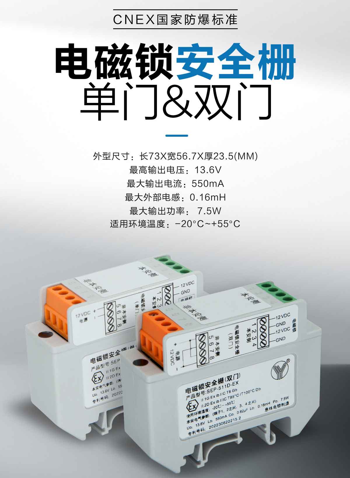 在爆炸性環境中提供電插鎖功能,實現門的電控鎖閉。
