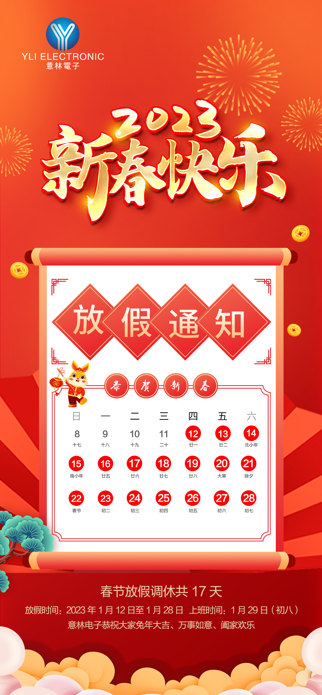 關于意林電子2023年“春節”放假安排通知