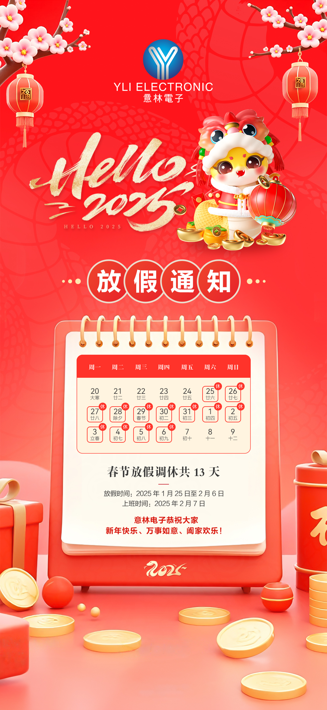 尊敬的客戶: 根據《國務院辦公廳2025年部分節假日安排通知》的規定,并結合公司實際情況,現將“春節”放假安排如下: