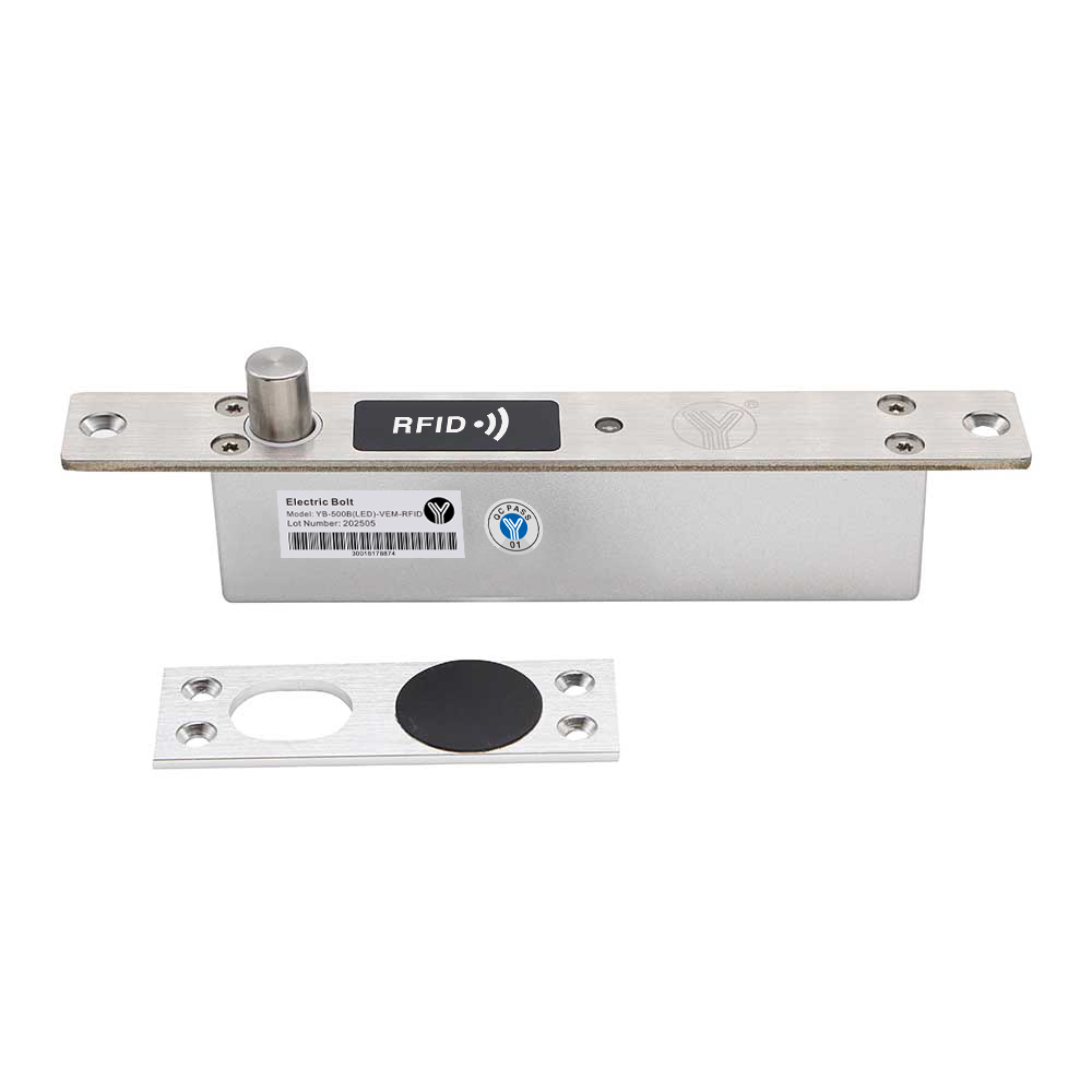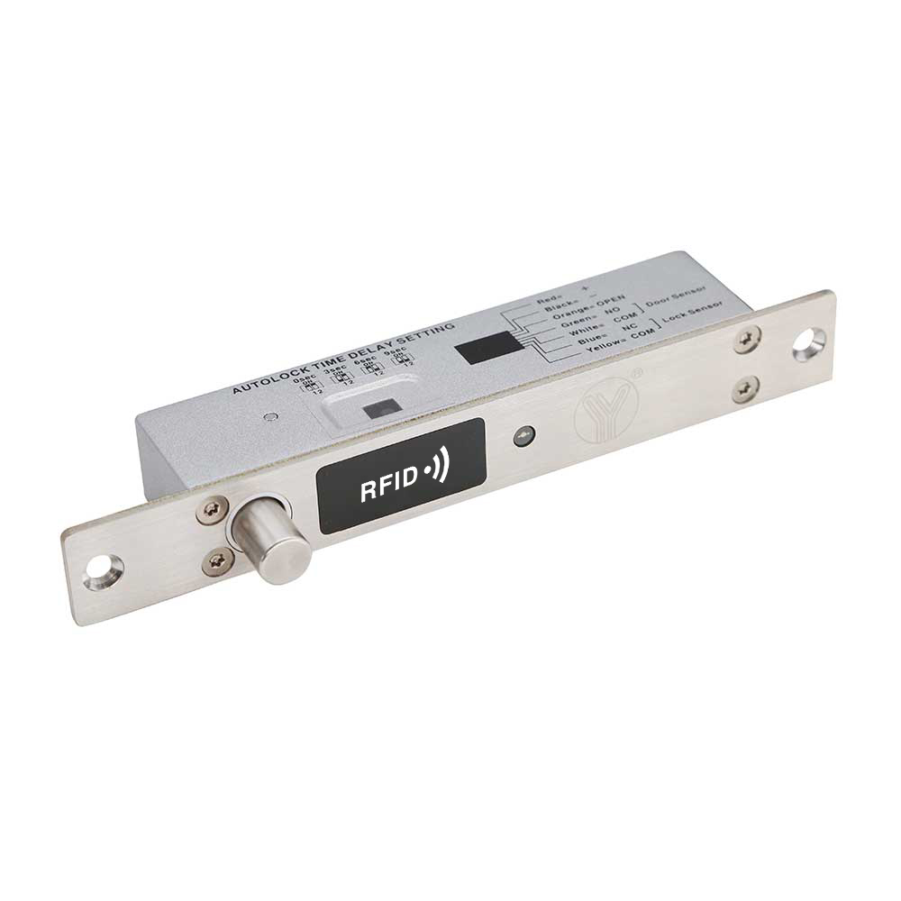 YB-500B(LED)-VEM-RFID是一款采用RFID技術的耐用型自助售貨機專用電插鎖,通過識別 RFID卡片信息實現上鎖,門閂板使用RFID卡片代替磁鐵片,鎖體貼的序列號與門閂板貼的序列號對應的唯一識別特性,有效解決傳統磁感電插鎖容易被騙鎖的問題及提高了安全性。鎖舌采用整體式304不銹鋼實芯棒材,經CNC車床精而成,可承受950kg靜態沖擊力, 鎖舌插出后防撬功能設計,連動部件全部采用金屬結構,在60℃高溫及零下20℃嚴寒的惡劣環境可正常使用,專業耐用型電磁閥,特殊光電控制超低溫及超低功耗設計,防入侵電路及專為自助售貨機閉環管理的智能邏輯電路設計等。是市場上自助售貨機專用的安全,耐用,可靠的最佳電鎖。