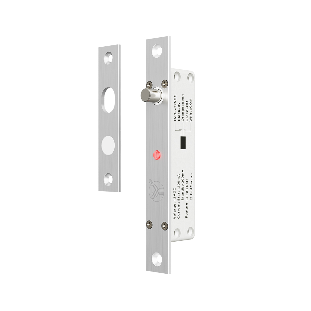 適用于雙向開門。電插鎖專為180度雙向開的門設計,向內開或向外開均可安裝。防入侵電路設計。鎖舌上鎖后,自動切斷干簧管偵察功能,避免人為截斷門閂板的磁鐵與鎖體干簧管的感應,使電鎖產生錯誤動作而開鎖。智能型邏輯電路設計。智能型邏輯電路設計,偵測鎖舌上鎖狀態是否正確。自動重新啟動上鎖功能可防止因門位不正無法上鎖。光電技術應用,減少機械故障。光電元件感應電磁閥驅動鎖舌動作,更耐用更穩定。不同于其它廠商使用機械式的微電開關元件,使用不穩定及使用壽命短等問題。低溫省電路設計。鎖舌插出后,瞬間低電流轉換。200mA的持續電流,低功耗 、低溫、環保并延長電鎖使用壽命。超耐用型電磁閥設計。專業設計的耐用型電磁閥,使用壽命超過50萬次測試合格。(設計應用超過5-10年使用次數)自動上鎖延時功能。自行設定0/3秒上鎖延時時間,以免門扇剛關閉時處于擺動狀態,經過設定延時時間后,門扇完全靜止后,電插鎖才啟動上鎖動作。全金屬結構鎖體。特別加強型金屬結構,內部連動部件也全部使用金屬加強處理設計,確保產品更耐用,更堅固,在高溫或嚴寒等惡劣環境應用而不會因材質不一致而影響正常使用。304不銹鋼實芯鎖舌。整體式不銹鋼實心材質,經CNC車床精加工而成,靜態強度測試約600kg,不同于市面上空心管加工后用膠塞的空心鎖舌部件,受力撞擊及嚴寒環境鎖舌脫落等問題。