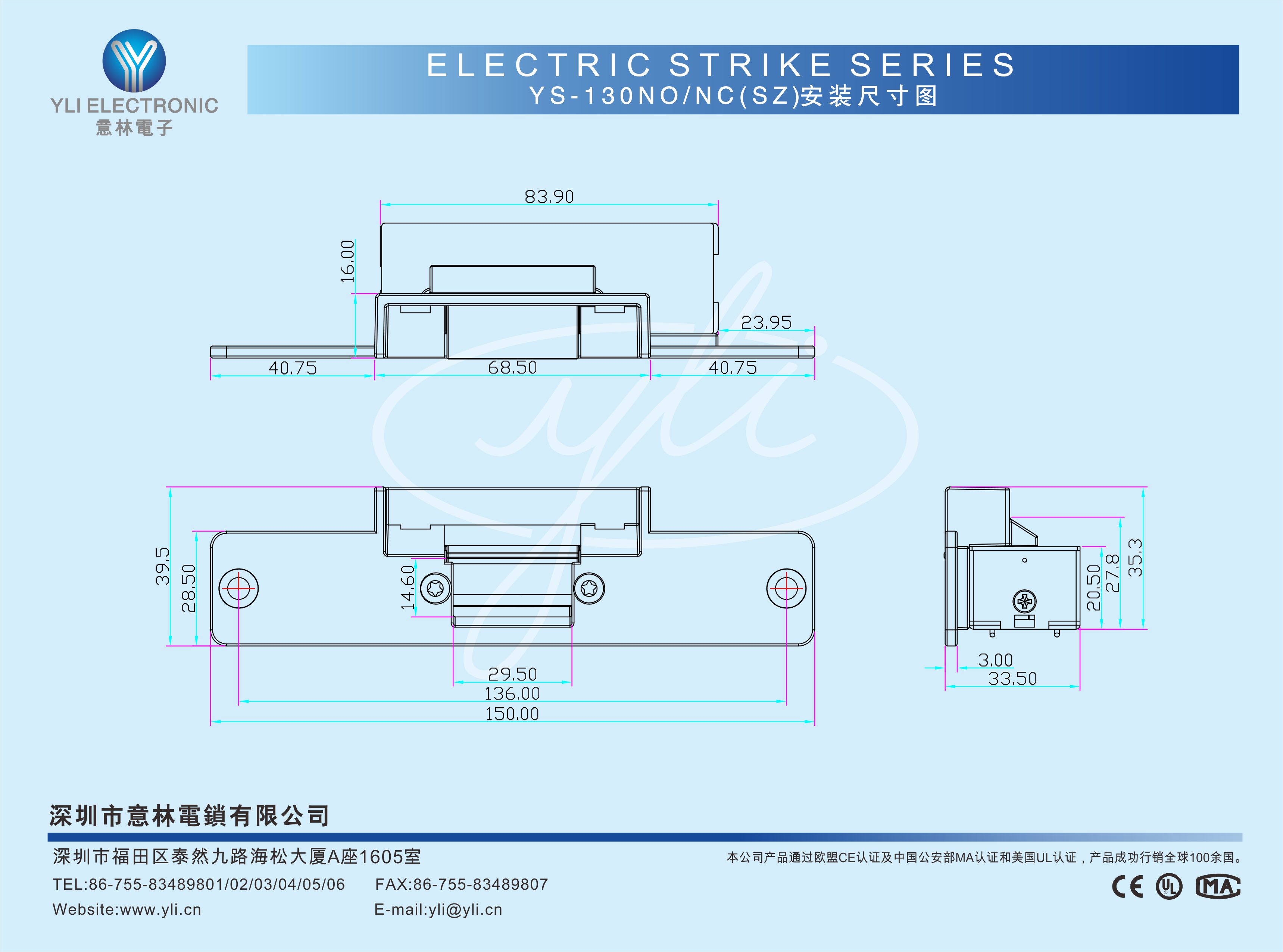 YS-130NO/NC(SZ) 美規標準電鎖口是專為美規機械鎖配套應用而設計,適用于一般木門、金屬門、PVC門等。可以達到平時“電控”與緊急時“手動”開門雙功能,電鎖口采用連續工作型耐用電磁閥,(NO,斷電上鎖)及(NC,斷電開鎖)可選擇,鎖舌采用304不銹鋼材質,內連動部件采用鐵基材質加硬處理,堅固耐用。