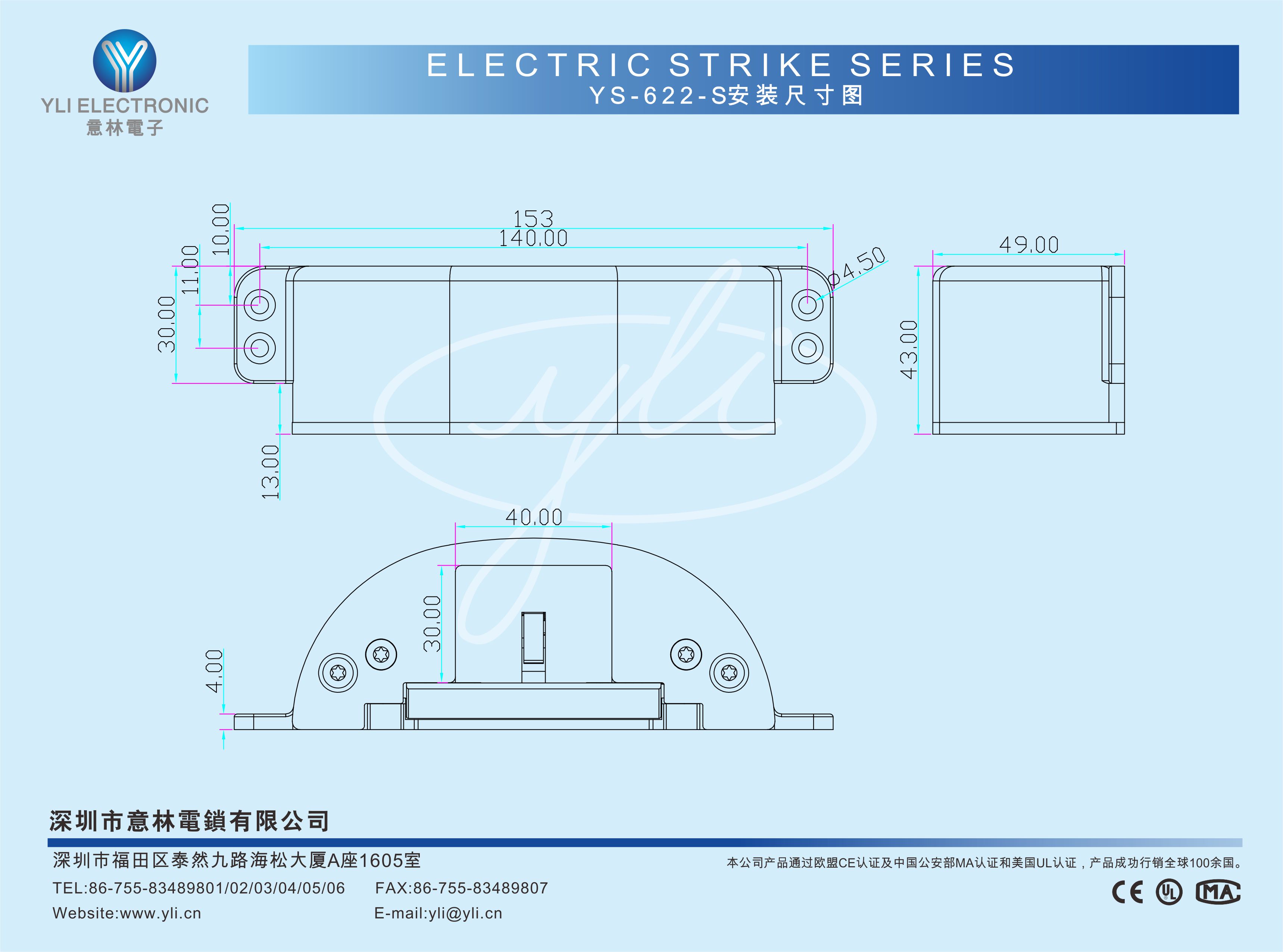 YS-622N-S(SS304) 雙門消防推桿專用高安保電鎖口(不銹鋼),是專為歐規及美規消防推桿鎖配套應用而設計,可以達到平時“電控”與緊急時“手動”開門雙功能,內設有一組門狀態信號(NO,NC,COM)接點輸出,為門禁系統反饋門狀態信息,本產品專利設計,內部活動件有效整合于一體,結構牢固,性能穩定,(NO斷電上鎖)或(NC斷電開鎖)模式現場可設置,(本型號產品全部采用304不銹鋼材質,通過歐盟3小時防火認證),在消防緊急出口需門禁管制時,本型號產品把機械推桿鎖的單向出口變成帶有門禁控制的雙向通道,是全面滿足商業酒店,辦公大樓、影院、機場、地鐵、工廠大廈、購物中心等公共設施的緊急出口與門禁控制系統配套時的最佳解決方案產品。