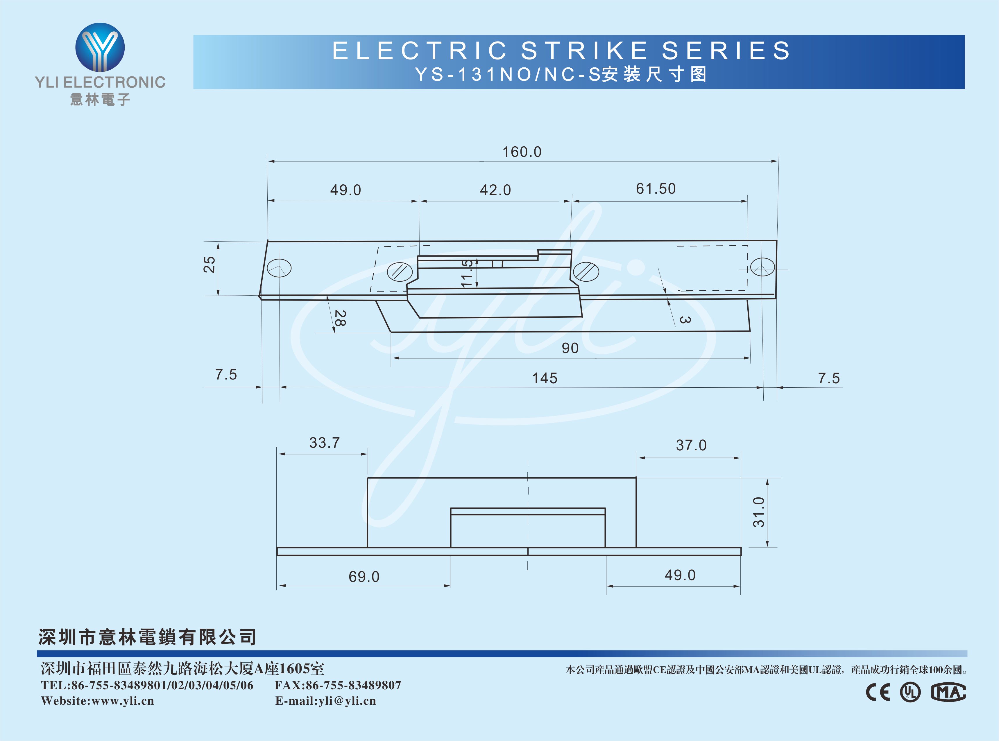 YS-131NO/NC-S 歐規短面板電鎖口附信號輸出是專為歐規機械鎖配套應用而設計,適用于一般木門、金屬門、PVC門等。可以達到平時“電控”與緊急時“手動”雙功能,內設有一組門狀態信號輸出(NO/NC/COM)接點,為門禁系統實時反饋門狀態信息。電鎖口采用連續工作型耐用電磁閥,(NO,斷電上鎖)及(NC,斷電開鎖)可選擇,鎖舌采用304不銹鋼材質,內連動部件采用鐵基材質加硬處理,堅固耐用。