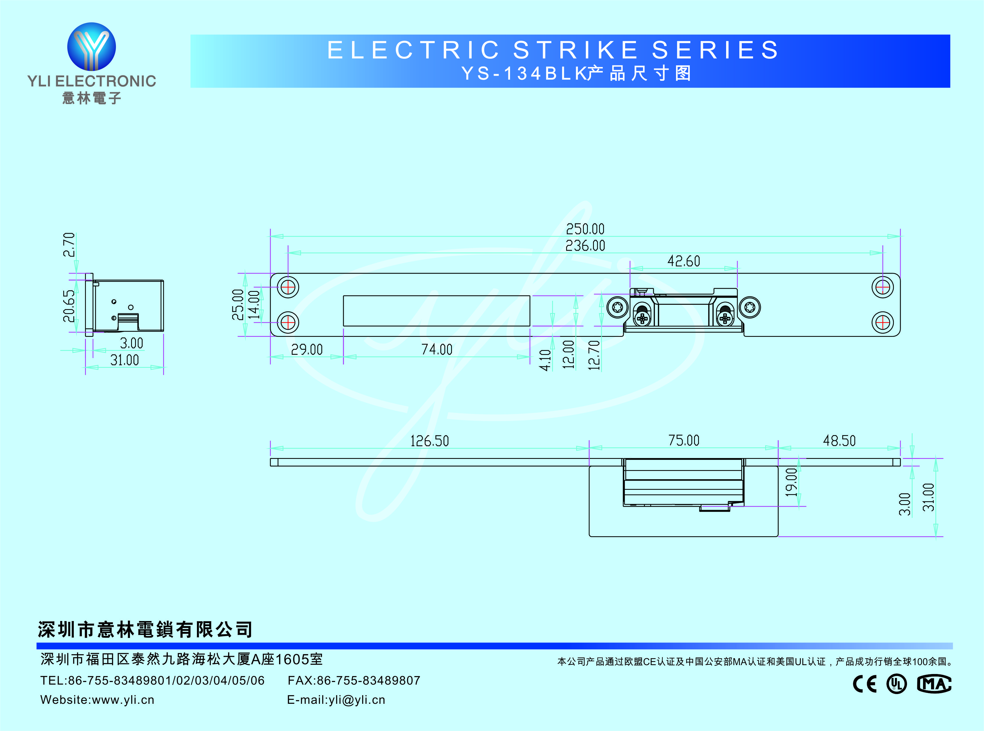 YS-134LK/134B 是一款窄框型歐式長面板電鎖口,是針對窄框木門、窄框金屬門等設計的。采用金屬結構,鎖舌采用鋅合金壓鑄,面板304不銹鋼材質,堅固耐用,承受300kg推力。斷電上鎖安全類型。