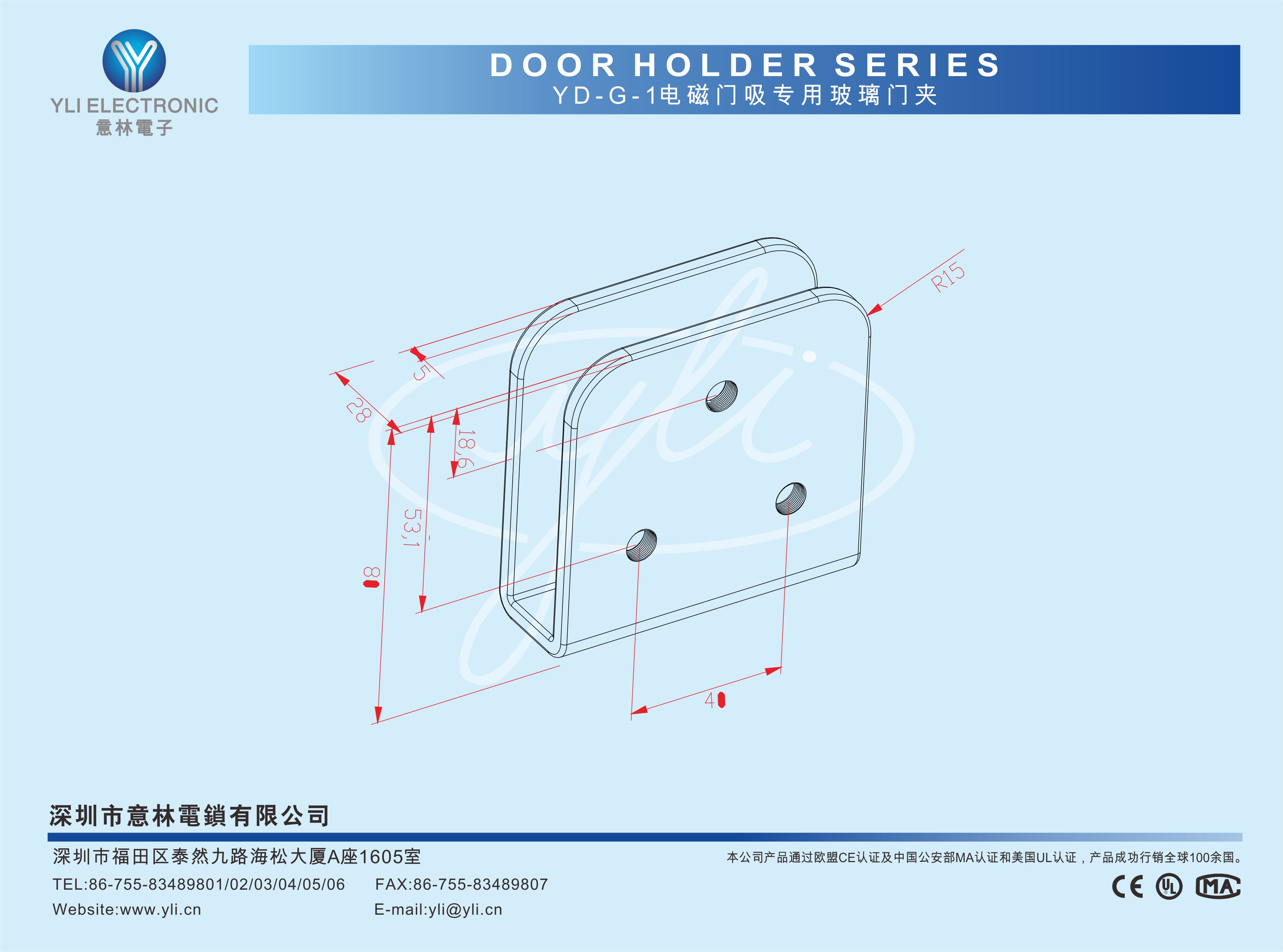 YD-G-1是一款電磁門吸專用U型玻璃門夾,適用(12~18mm)玻璃門無需開孔直接安裝,安裝時電磁門吸與玻璃門夾調好位置可直接吸住門扇,U型玻璃門夾5mm加厚鋼板設計,既堅固又耐用,專業消防工程指定使用產品。