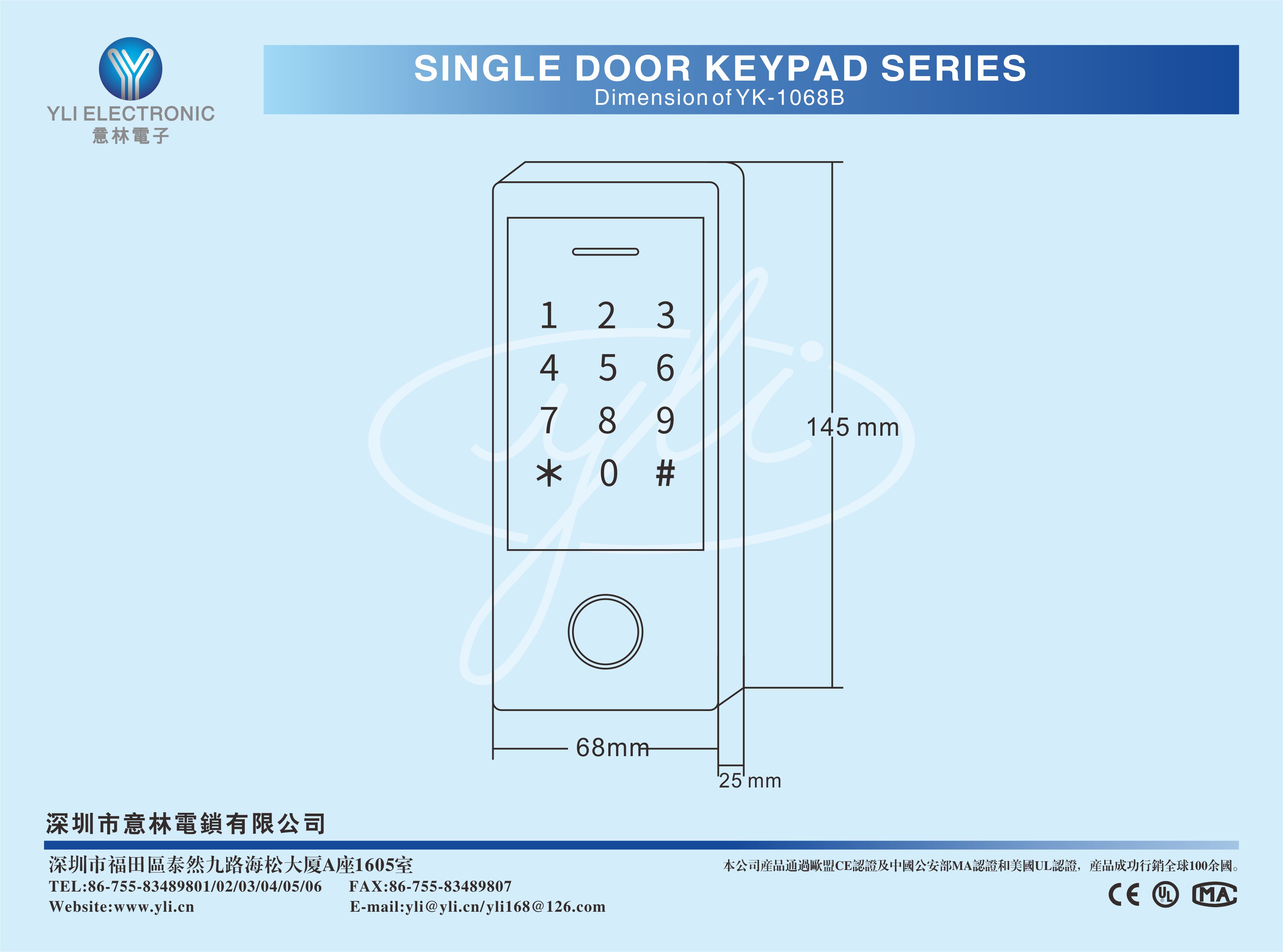 YK-1068系列產(chǎn)品是一款輕觸式防水型指紋金屬控制器,可以讀ID卡它使用美國Atmel公司的MCU,性能更穩(wěn)定.采用成熟的低功耗電子線路,壽命更長.防水級別IP66,它可以使用在室內(nèi)或惡劣環(huán)境下的室外使用.