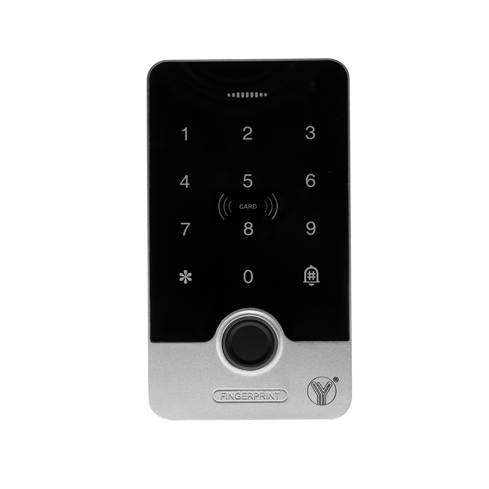 YWF-1168 智能指紋門禁機,采用金屬外殼,亞克力加硬面板材質(zhì),指紋; IC 卡;密碼;開門三種開門方式;用戶容量300枚指紋; 1000張IC 卡,1000個密碼。具有指紋、IC卡、密碼三種開門方式;具有高清晰人性化語音提示功能。