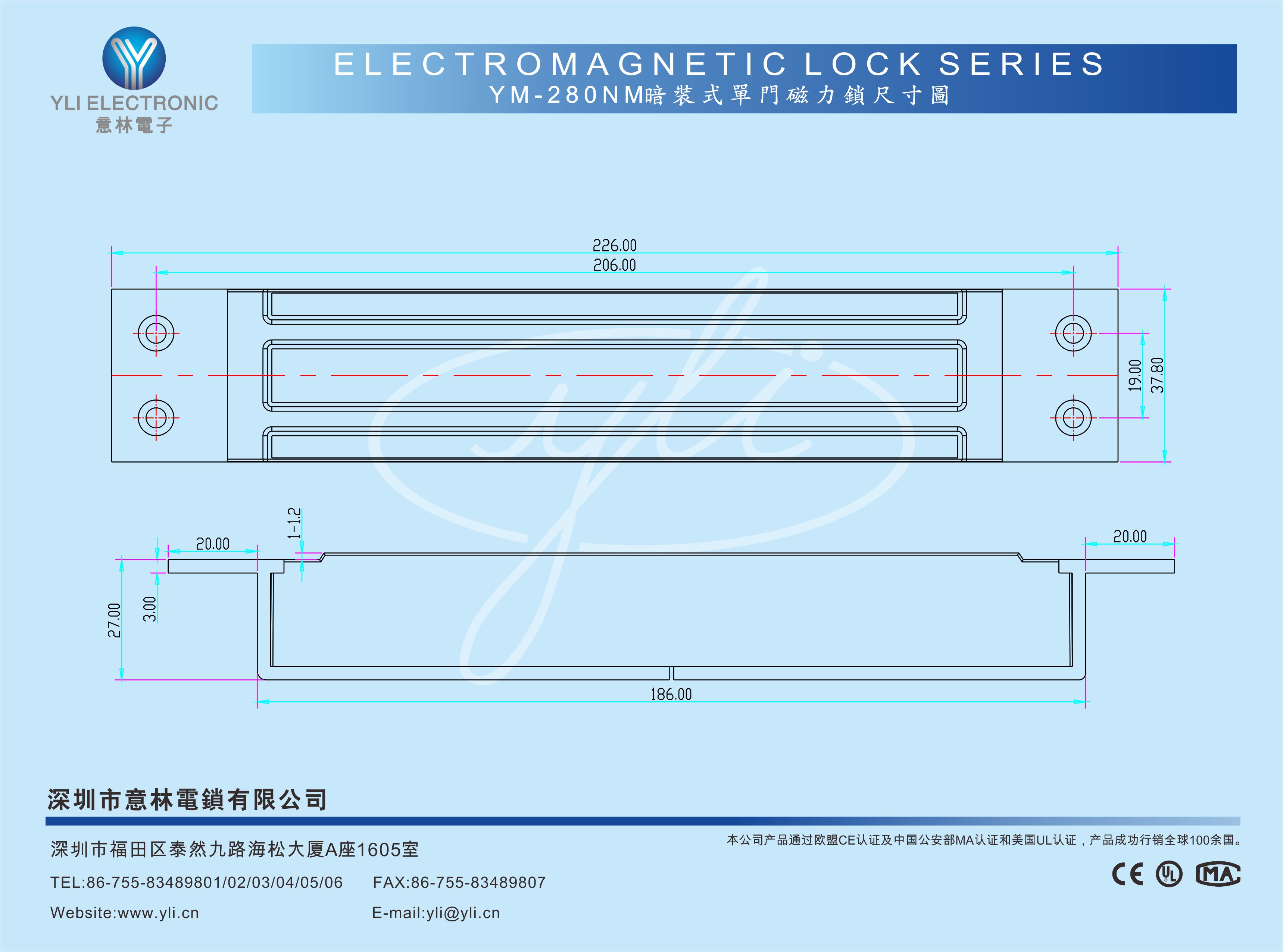 上鎖時NO輸出,開鎖時NC輸出 (YM-280NM-S) |