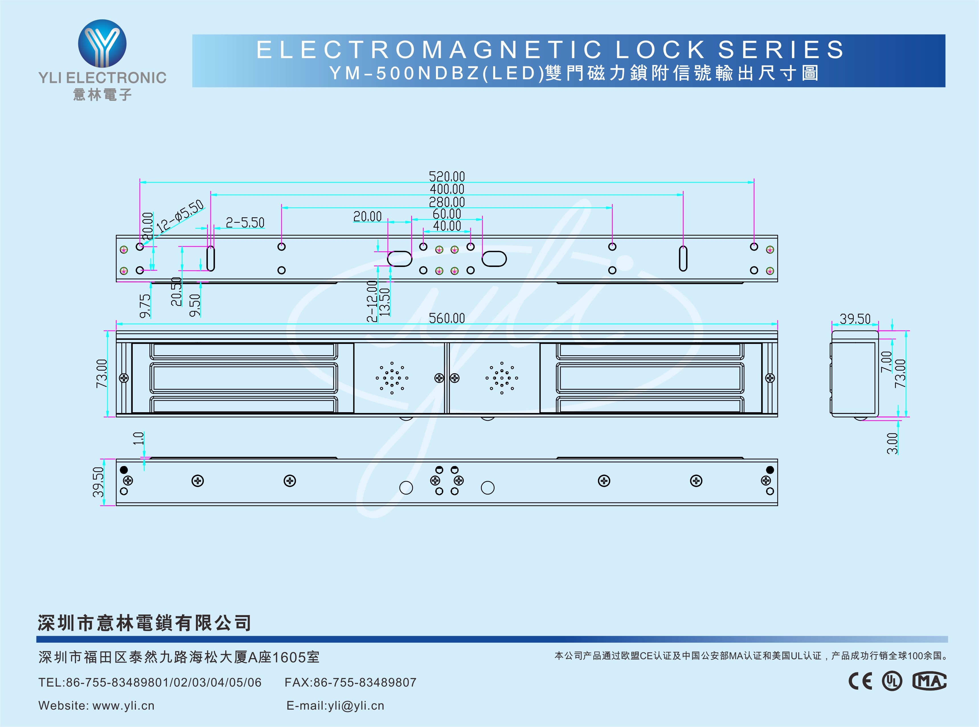 直線吸力:500kgx2±10%適用溫度:-30 ℃ ~ + 66℃適用濕度:0~95%相對濕度防腐性能:通過 240 小時鹽霧測試鹽霧拉力:240小時鹽霧測試后拉力衰減5%內耐用性能:通過 100 萬次循環測試耐用拉力:100萬次耐用測試后拉力衰減5%內沖擊性能:承受 45J鐵錘撞擊5 次測試殘磁性能:少于 0.5 秒消磁開鎖過壓測試:125%額定電壓 24H沒有損壞低壓測試:85%額定電壓保持相應拉力鎖體阻燃:使用阻燃樹脂灌封(等級:V-0)鎖芯加強: 激光焊接提高結構強度質量保證: 三年質保通過多國認證,符合國際安全標準